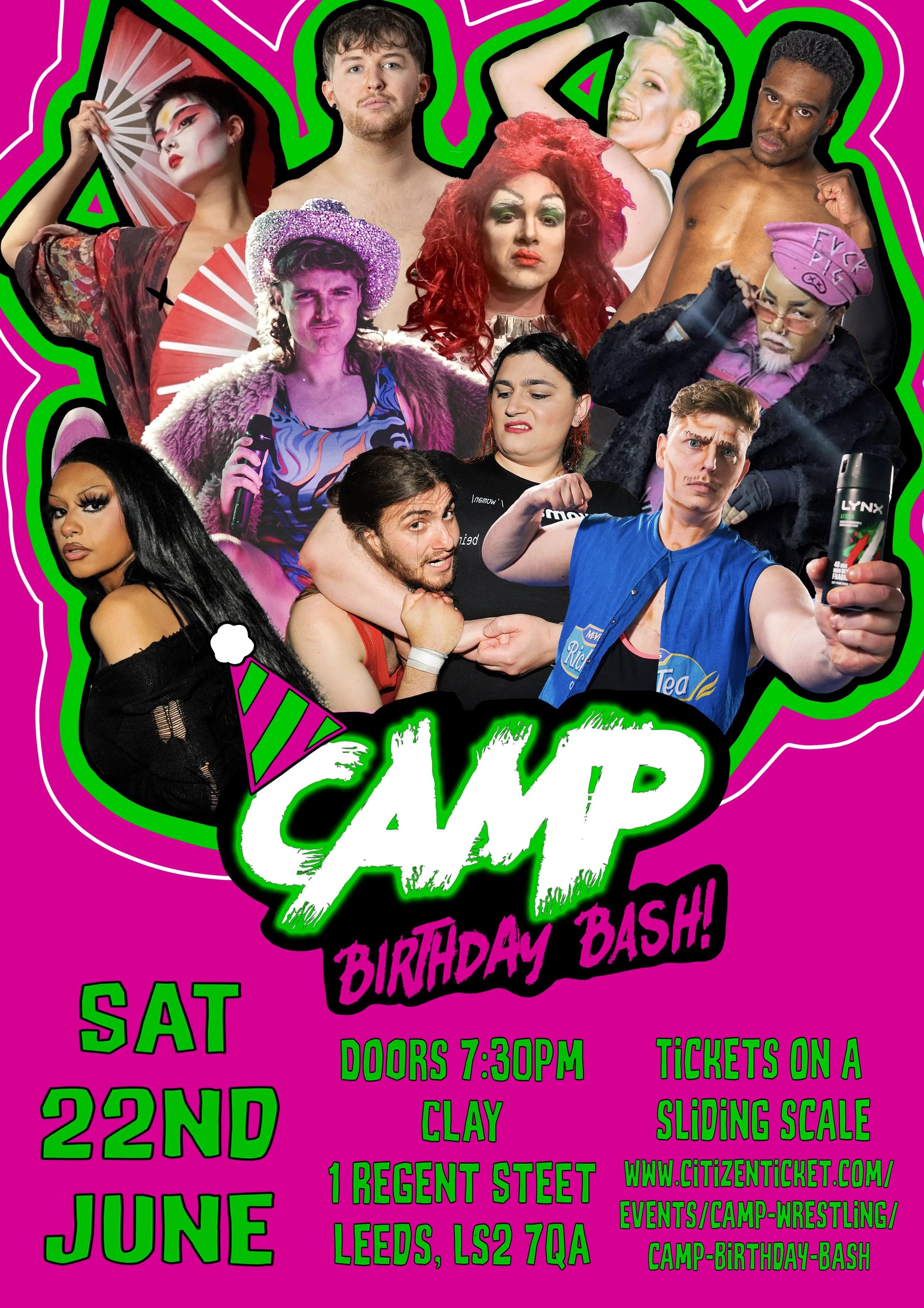 We had a fantastic time in our first foray into wrestling outside Leeds! Featuring the return of Helen Charlotte Campbell, Maxxx Gaynz attempting to finally get his first win, and the debut of two CAMP mainstays in Dign Frisby and Robyn Ratt!